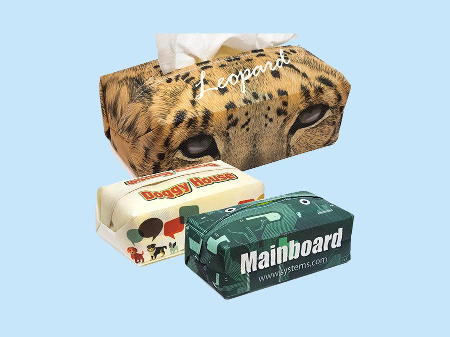 適合促銷及贈品的全彩面紙盒套,提供客製尺寸;有不織布及聚酯纖維等兩種不同材質可以選擇,所有包覆面皆可印製您專屬的商標及設計,亦是居家小物的最佳選擇。