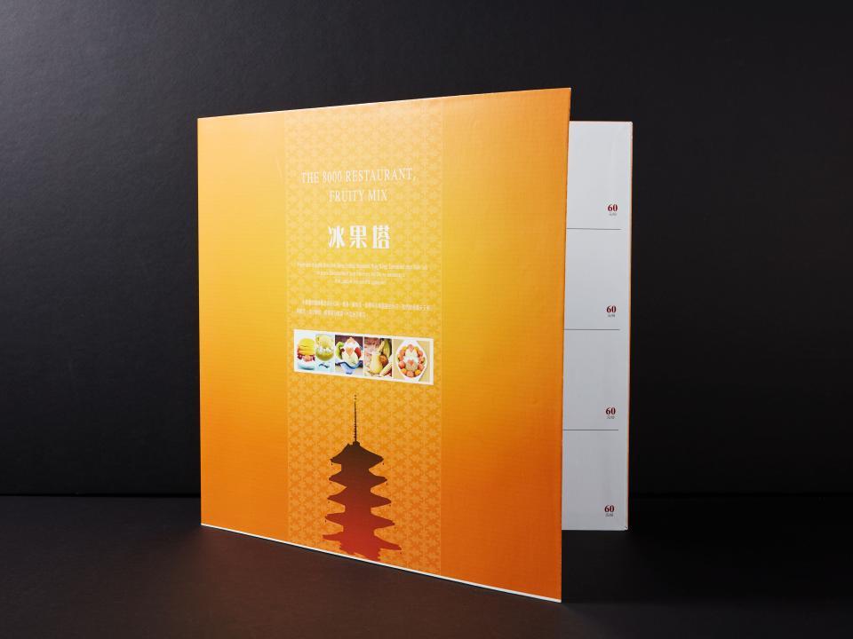 製作精裝硬殼折式菜單型錄,樣式設計獨特過目難忘,整體裝訂堅固,好抽換,閱讀者翻閱容易,適用於商品型錄、餐廳menu等精裝菜單與型錄印刷製作。