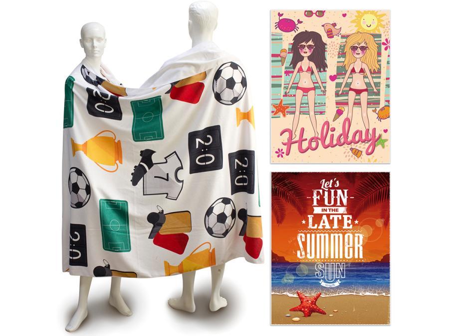 單面熱昇華沙灘巾,完整客製,尺寸任選;透過昇華熱轉印的方式,將全彩的 LOGO、圖片及照片精美呈現,讓您成為沙灘上最引人注目的焦點,今年夏天最酷炫的熱門商品。