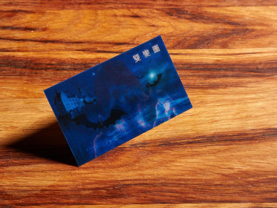 3D雙變卡名片採UV印刷技術,可隨視角變換圖像,呈現動態變化效果。適用商務名片、邀請卡、謝卡等,可搭配裁切、軋型等加工,打造高質感視覺設計,提升品牌識別度。