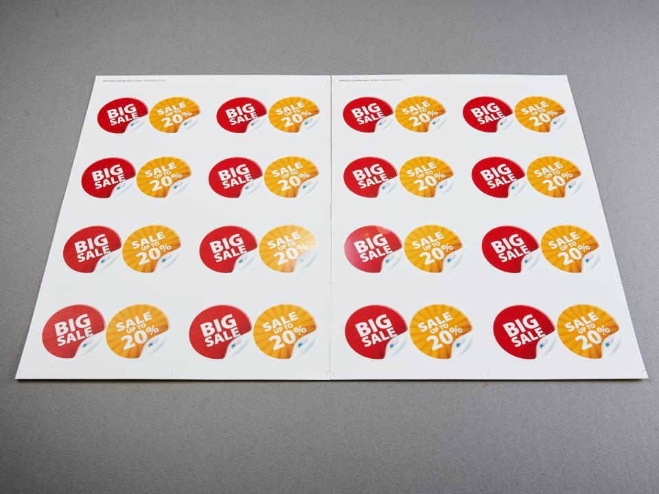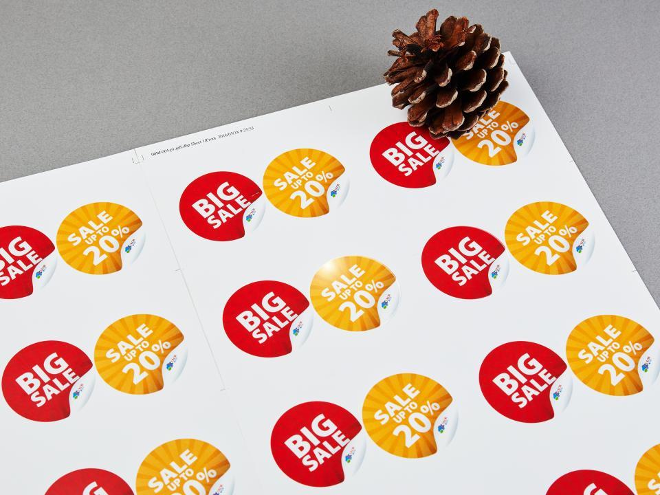 大A3亮膜貼紙,銅版紙搭亮膜加工,白度柔和,防水不易變黃,底部塗佈膠水,適合宣傳、標籤、文創與企業貼紙等多元用途。
