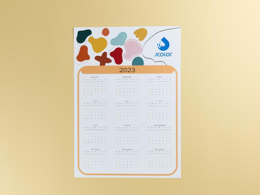 提供 A3 及 O2K 兩種尺寸選擇,材質使用157g超亮特銅印製,一頁式設計,全年日期一目瞭然,空白處可放置照片或廣告,公司行號可用於品牌宣傳,是經濟實用的年節商品。