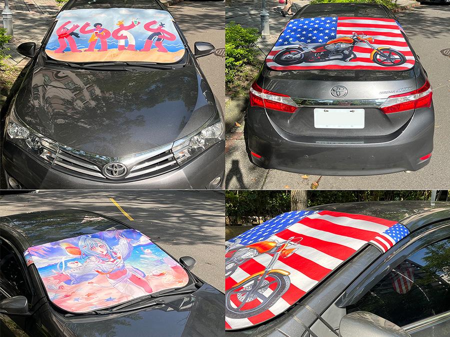 不再害怕炎炎夏日進入車子內部的灼熱感,外觀圖案客製設計,具有廣告效果與遮蔽陽光的雙重功能,本產品供使用於車子前後擋風玻璃外,戶外停車防落葉及防窺視的利器,會是您生活中的重要工具。