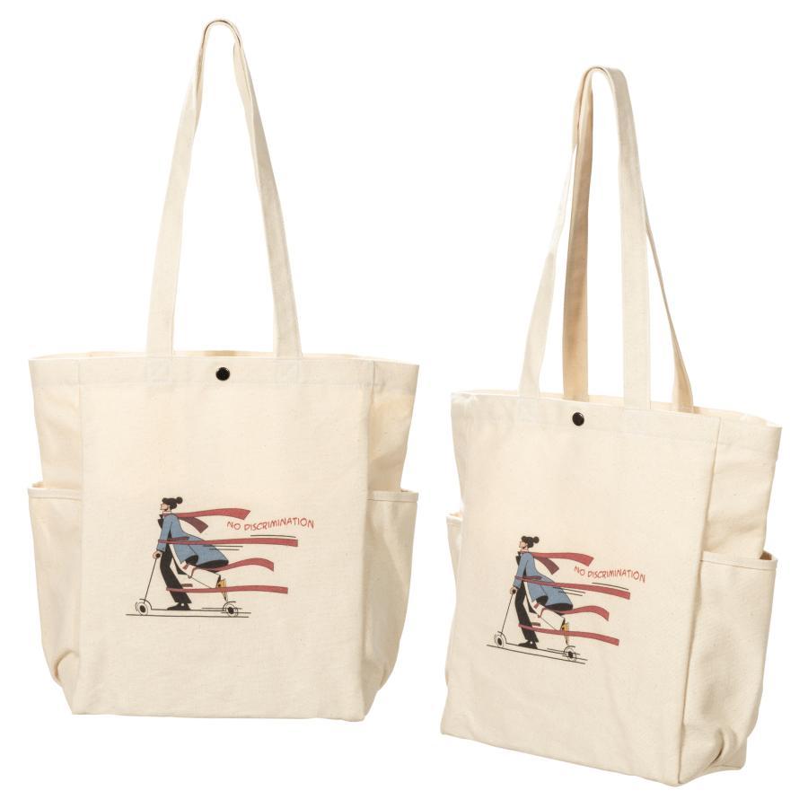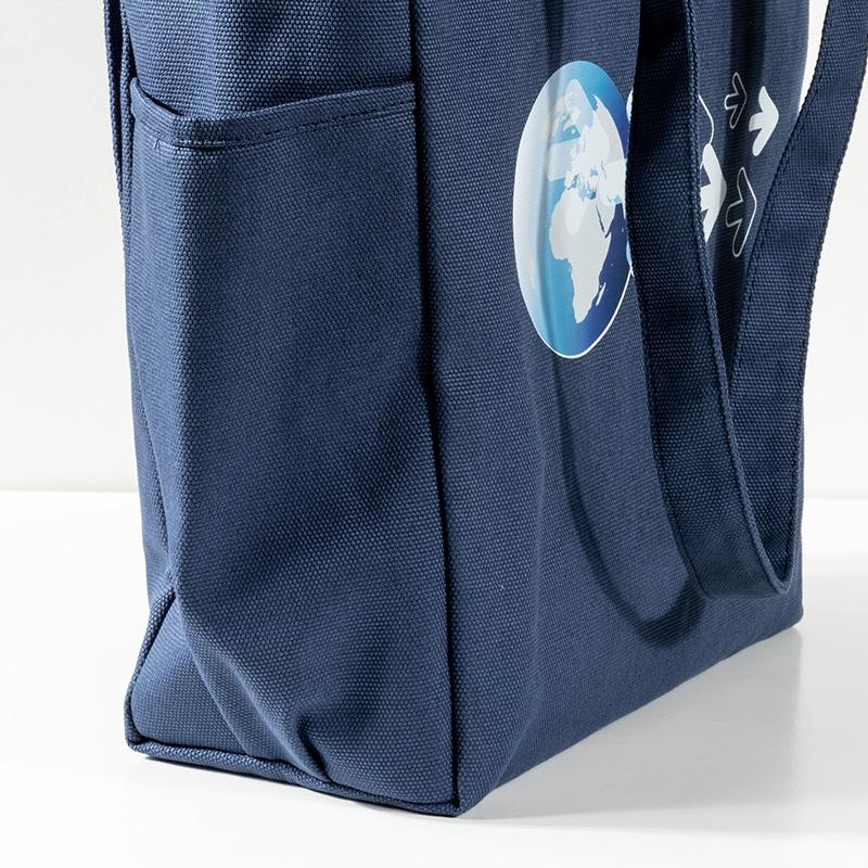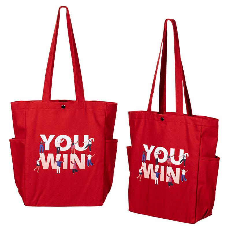 本商品定位為耐用型帆布購物袋,兩側附有大口袋,可以收納飲料瓶罐或傘具,提把另有加固,超大容量且堅固耐用,適合購物逛街與小旅行使用。