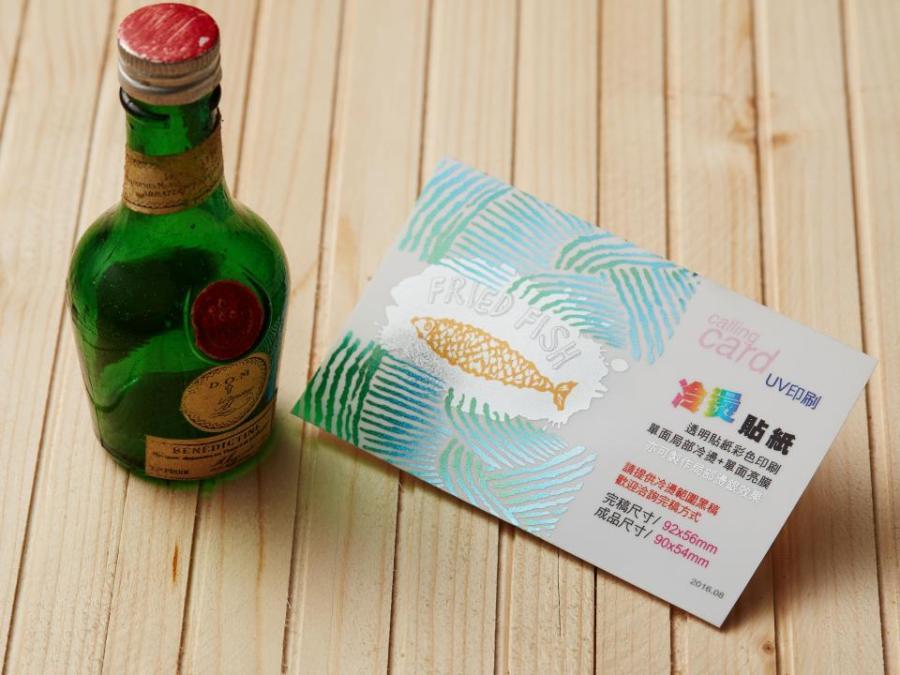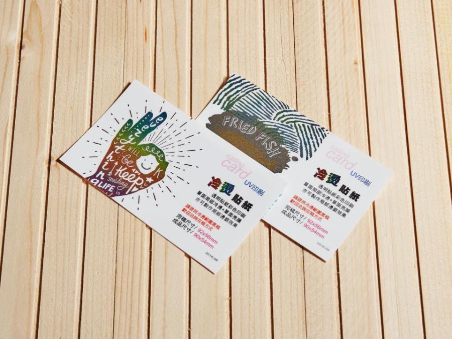 冷燙貼紙,底材為透明貼紙材質,防水耐磨,搭配 UV冷燙、亮面效果,適用於 logo貼紙、品牌標籤、包裝貼紙,可 客製導圓角、裁切,讓產品標識更具層次與質感。