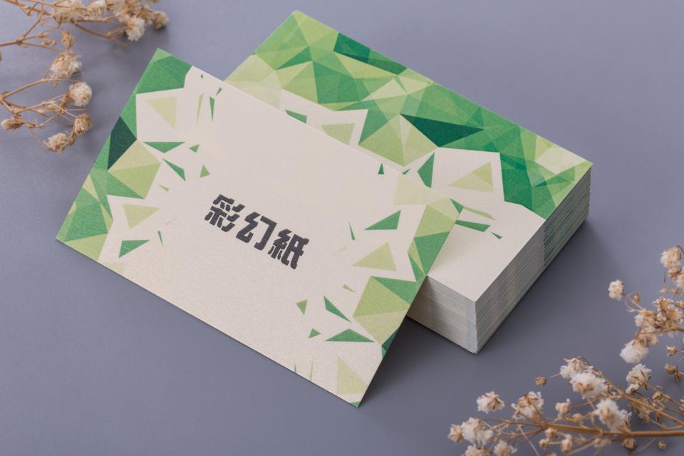 彩幻紙名片,具金屬光澤感,紙色帶金,印刷後呈現炫麗效果。適合商務名片、個人名片製作,可搭配燙金、打凸、導圓角等名片加工,亦可用於書籤、謝卡、卡片印刷,展現高級質感。