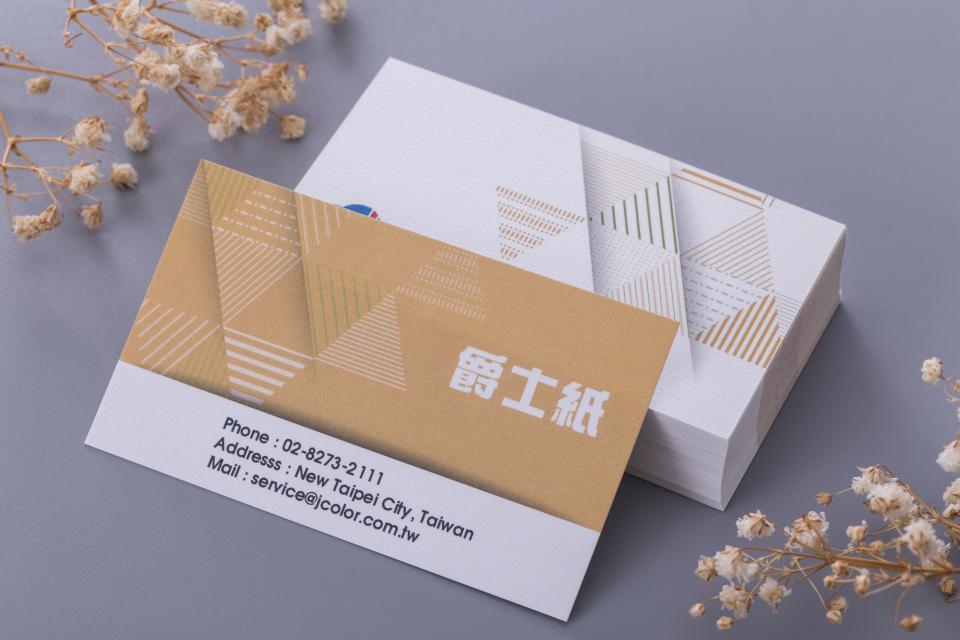 爵士紙名片,採鵝白色細波壓紋,觸感細膩,帶有珍珠光澤感,吸墨性佳,印刷色彩更飽滿。適用商務名片、個人名片製作,可搭配燙金、燙銀、名片打凸等名片加工,打造獨特高級名片,提升品牌質感。