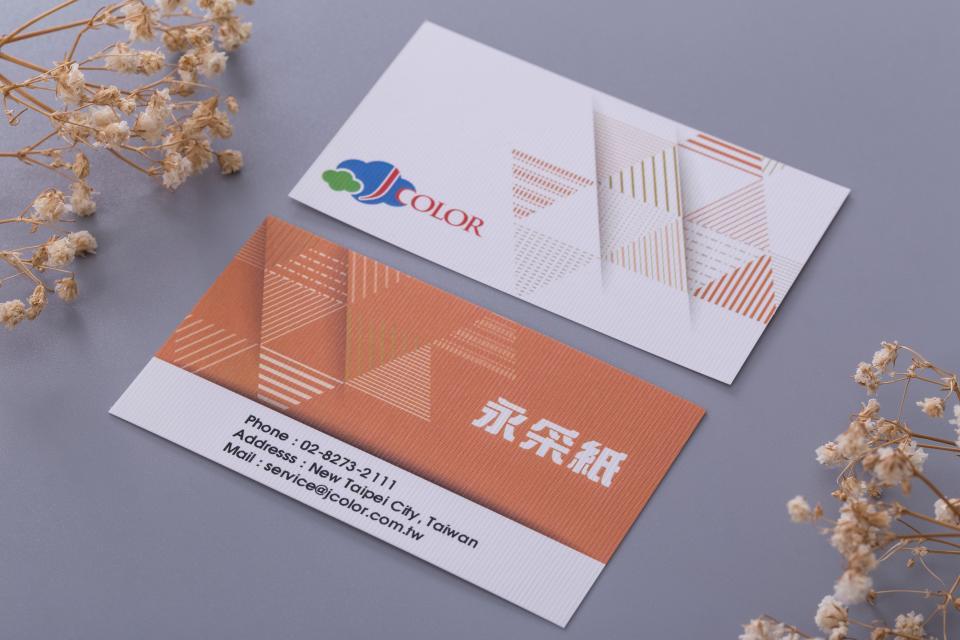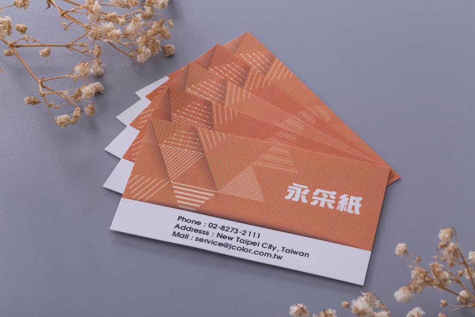 永采紙名片,採用低亮度米白紙張,帶有細緻橫條紋,質感典雅細膩。適合商務名片、個人名片製作,可搭配燙金、打凸、導圓角等名片加工,亦可作書籤、謝卡、婚禮謝卡,展現高級質感與立體層次。
