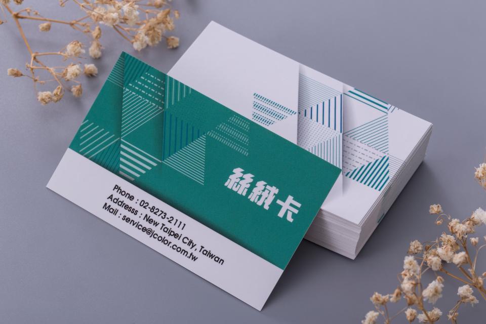 絲絨卡名片,獨特絲絨觸感,細膩柔滑,提升商務名片、個人名片製作的奢華質感。可客製燙金、燙銀、導圓角、打凸等名片加工,亦適用喜帖、謝卡、書籤等印刷,展現品牌專業與典雅設計。