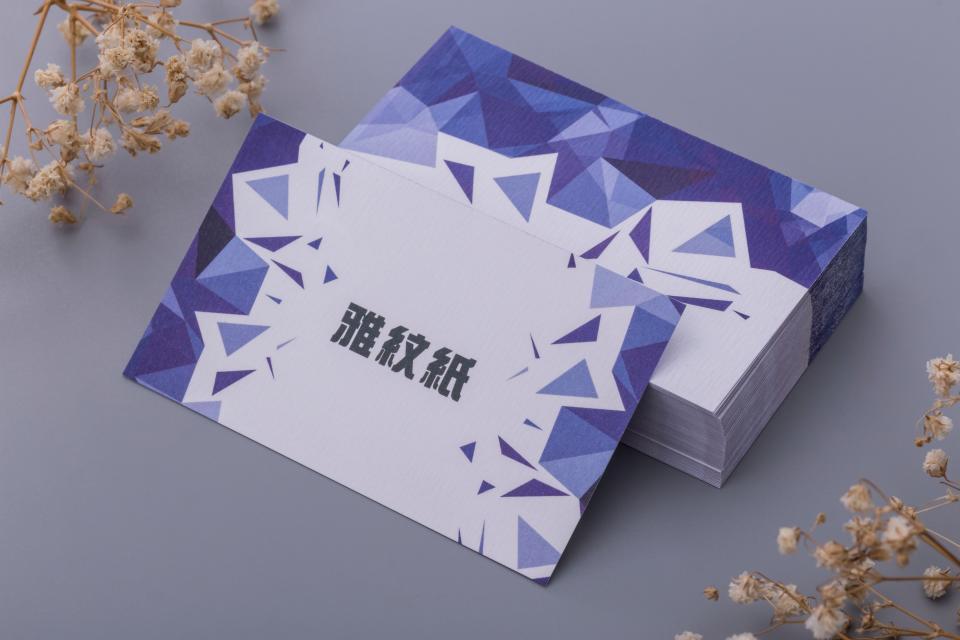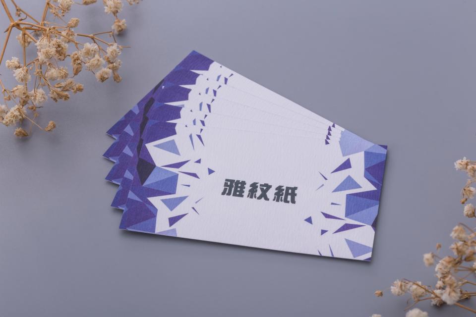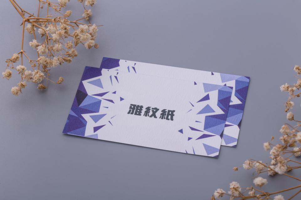 雅紋紙名片,獨特細緻石紋紋理,紙張輕盈不厚重,墨色較深具光澤雅痞感,呈現樸實典雅質感。適合商務名片、個人名片製作,可搭配燙金、打凸、導圓角等名片加工,亦可用於明信片、謝卡、卡片印刷,提升品牌識別度。