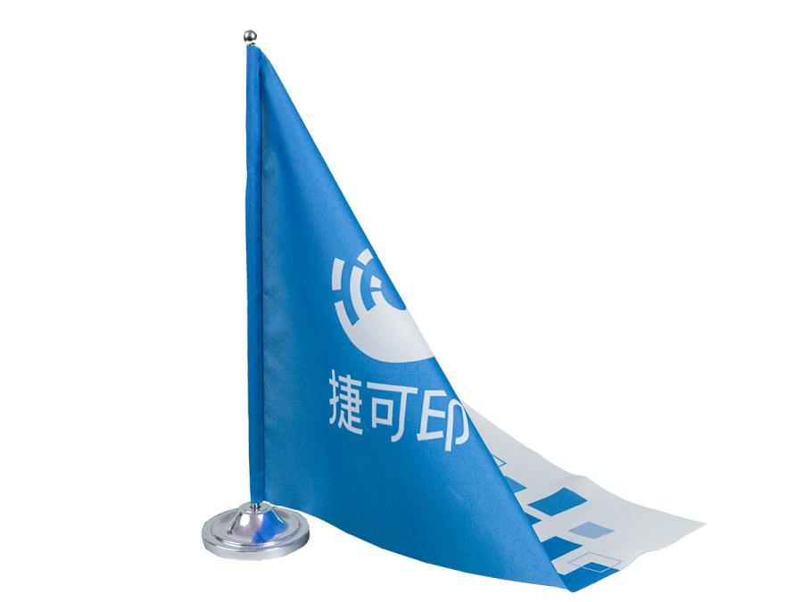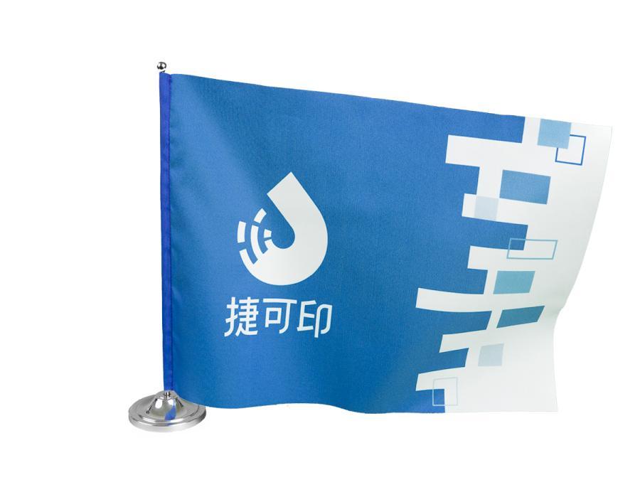 桌上旗色彩飽和、圖案清晰、耐日曬雨淋、鮮明持久,非常適合放置於辦公桌、接待處、迎賓處等地方,再搭配桌上旗座,辨別效果佳,增加良好的企業形象與魅力!