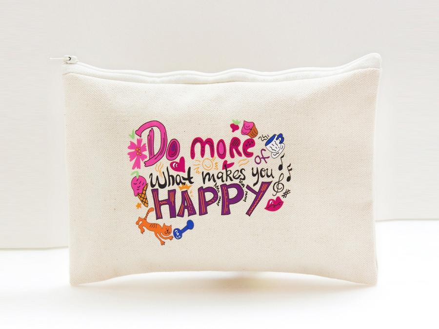 環保簡易色布帆布化妝拉鍊袋收納包,全彩燙印為數位印刷製程,無須版費,布料、針車,全程台灣生產製做。