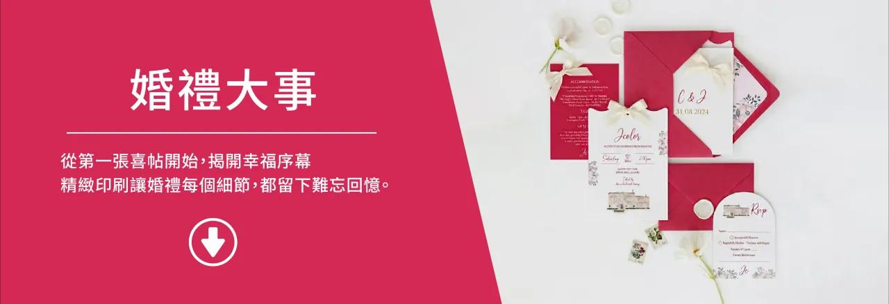 精選邀請卡、數位貼紙等商品,協助喜慶必備一次備齊婚禮前置物料,提升婚宴籌備的專業質感。