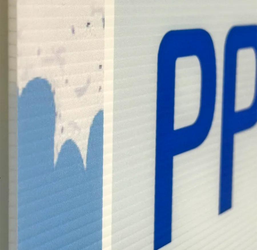 本商品具有防潑水、不易褪色的特性,防水、質料輕,不易變形。可廣泛應用於室內外廣告看板、房仲看板及交通標示等。